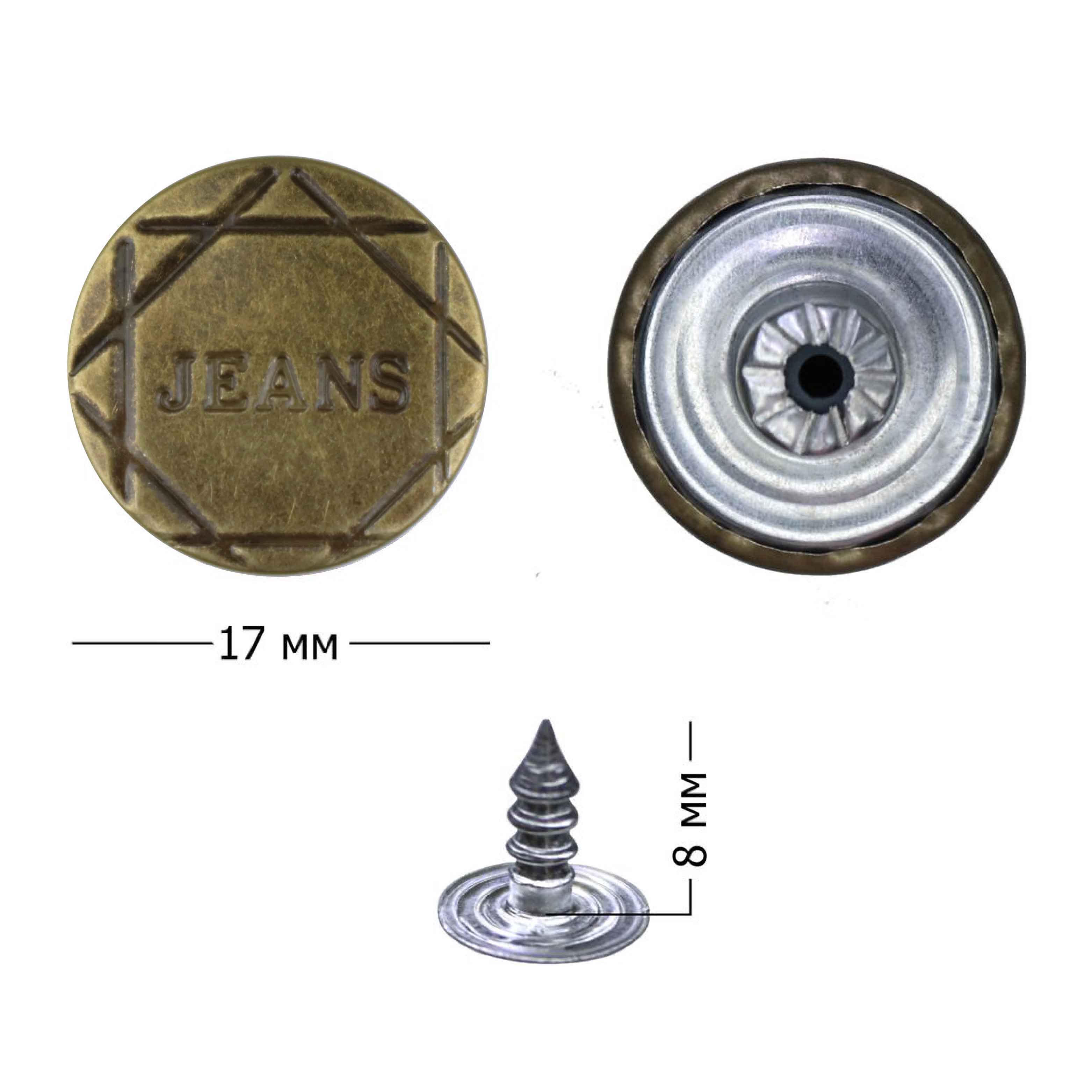 Кнопки - пуговицы джинсовые арт. 10 (уп. 100 шт.) диам. 17 мм латунь надпись в ромбе