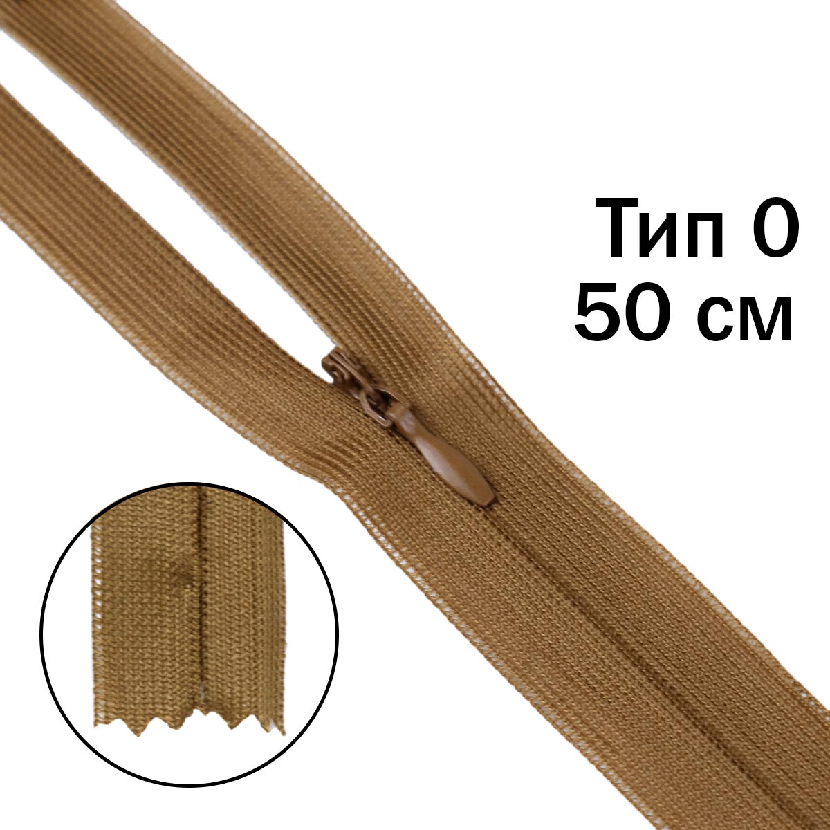 Молния "потайная" тип 0 50 см н/р (уп. 50 шт) № 050 ДС коричневый