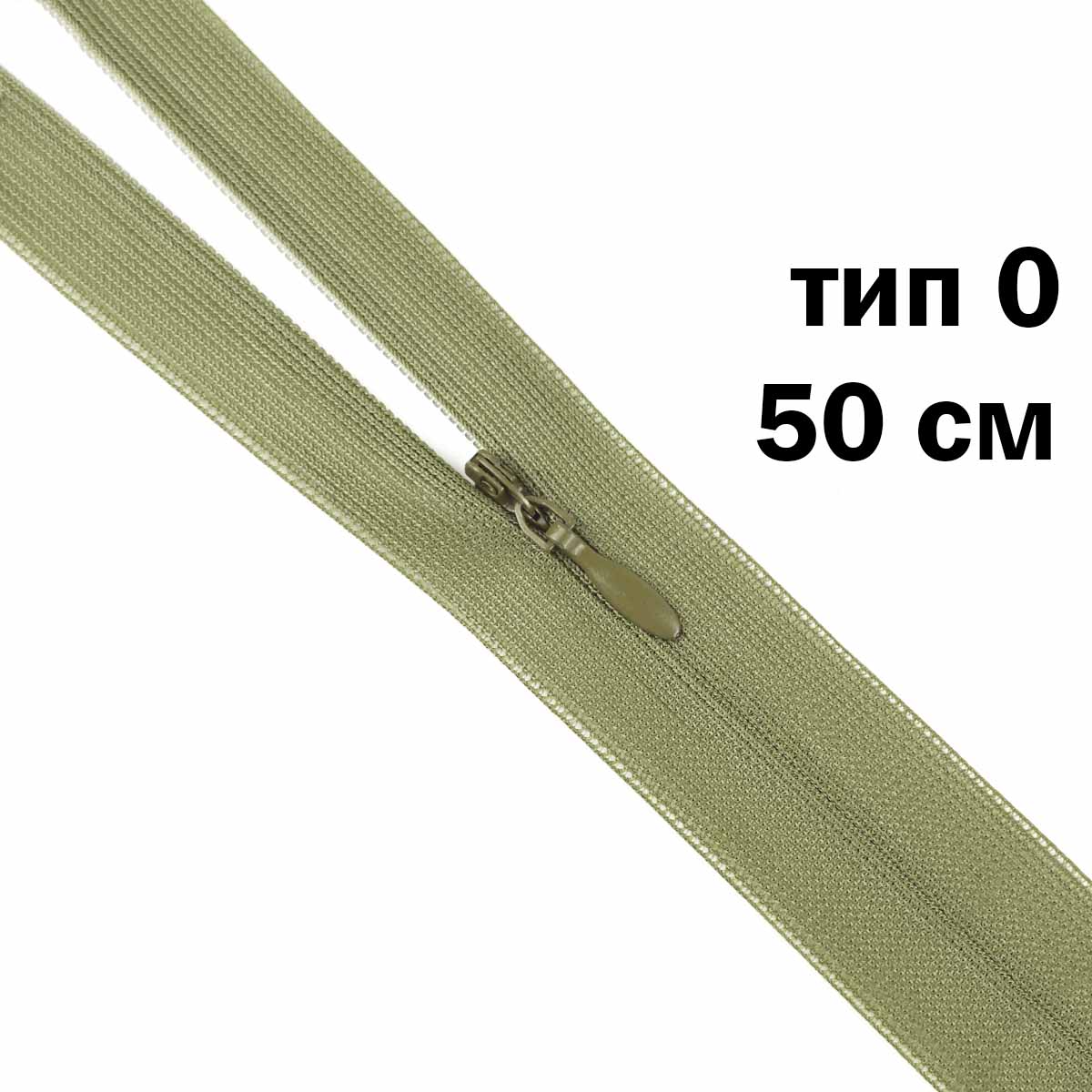Молния "потайная" тип 0 50 см н/р (уп. 50 шт) № 056 ДС оливковый