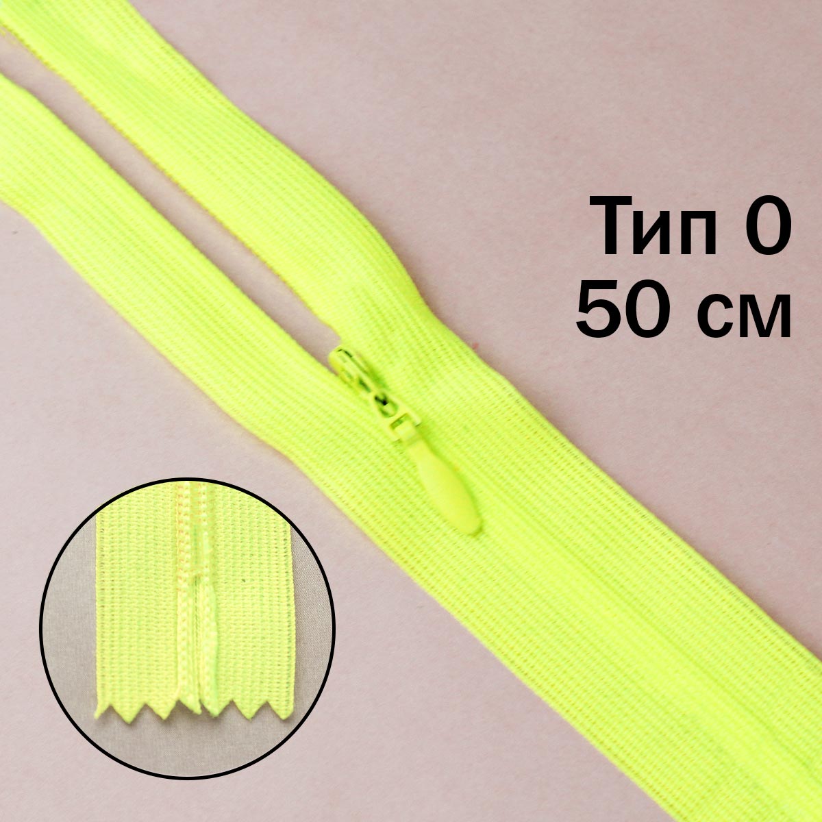 Молния "потайная" тип 0 50 см н/р (уп. 50 шт) № 070 ДС кислотно-салатовый