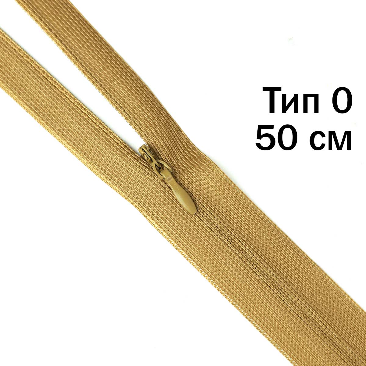 Молния "потайная" тип 0 50 см н/р (уп. 50 шт) № 045 ДС горчичный